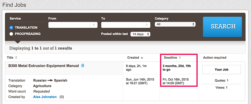 When you submit a quote on hyperlingo, it is important to check the job's deadline and ensure that you will be able to deliver the completed documents on time.